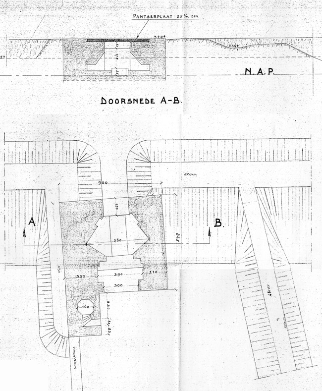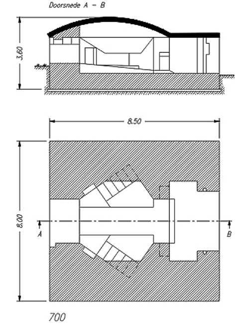 Deze tekening van de kanonkazemat type 700 is in eigen beheer gemaakt,