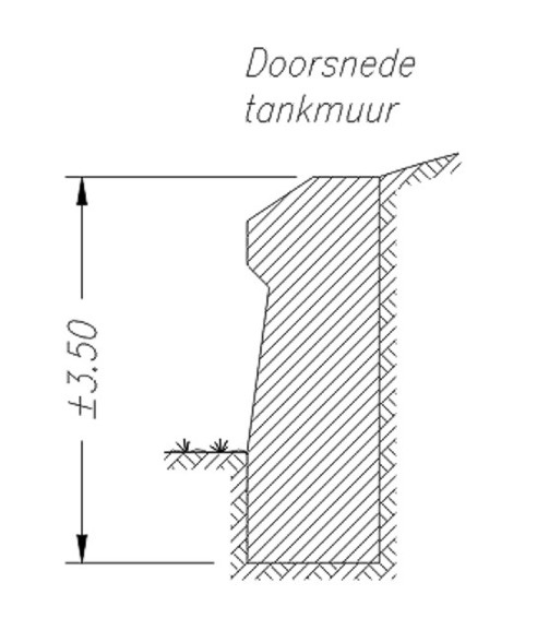 Dit is het resultaat van eigen opmetingen aan de tankmuur. Let u op het
