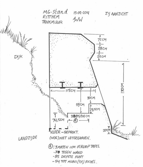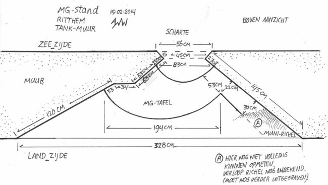 Er is nader onderzoek gedaan naar de mitrailleur posities in de muur.
