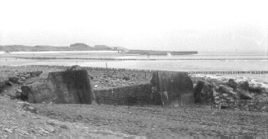 Oude foto's van de restanten van de tankmuur.
