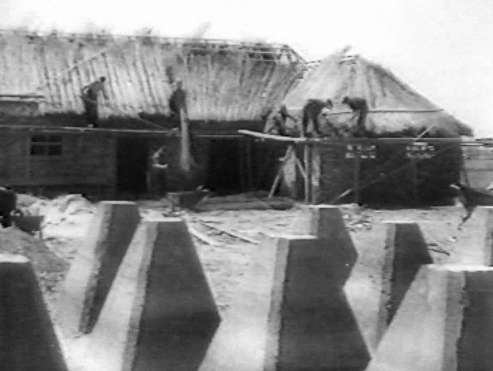 vroegere verdediging in zee te zien. Enkele foto's zijn uit de film "De dijk is dicht"