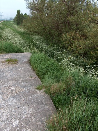 Deze bunker ligt in de dijk van de Weelhoekweg, direct naast het hek van de kerncentrale.