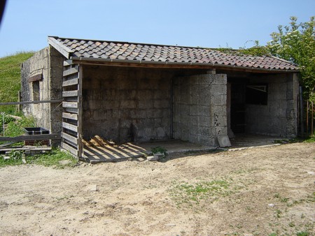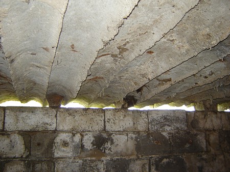 Het dak is gestort op een bekisting van ronde boomstammen. Ze lijken