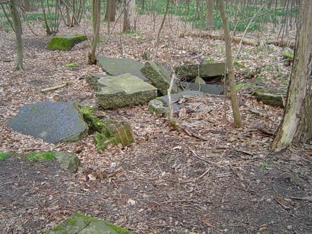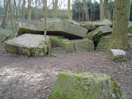 Bij het kasteel Westhove liggen langs de weg door het bos resten.