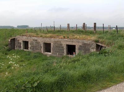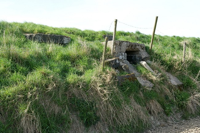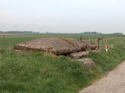 Deze Flak opstelling is gelijk aan die zuid van de Sloedam. Hij heeft mogelijk later een betonnen dak heeft gekregen om