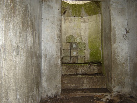 De ingang is gebroken en er is een voorportaal van 3 m voor de ingang van de tobroek zelf.